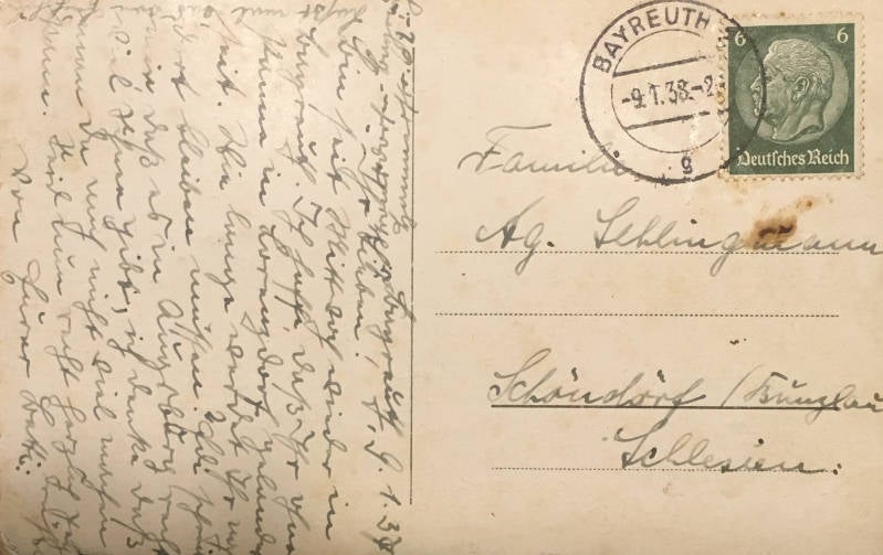 Deze ansichtkaart is gelopen en afgestempeld 9 januari 1938.