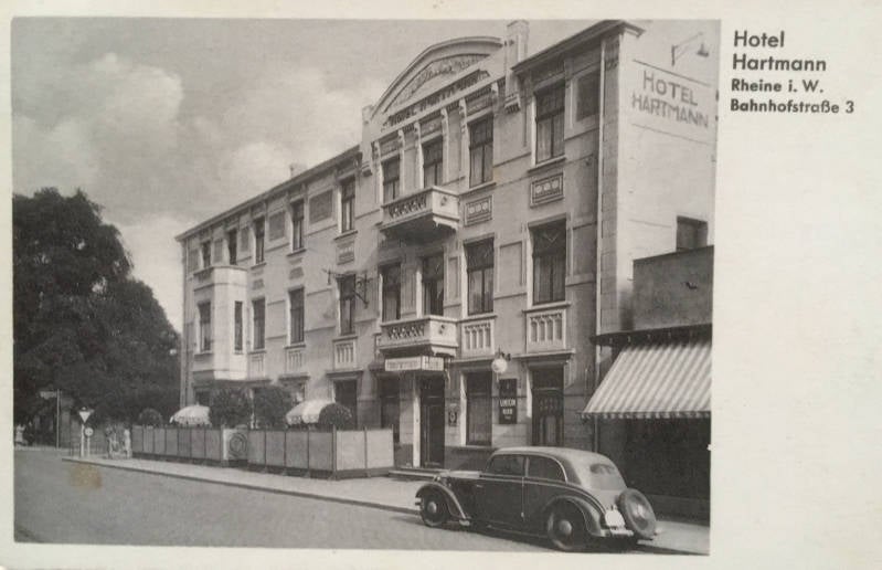 Hotel Hartman was gelegen in Rheine und de deelstaat Nordrhein-Westfalen. Wanneer het hotel is gebouwd is niet bekend echter het moet ergens voor 1904 zijn gebouwd. Kaart is in een goed staat